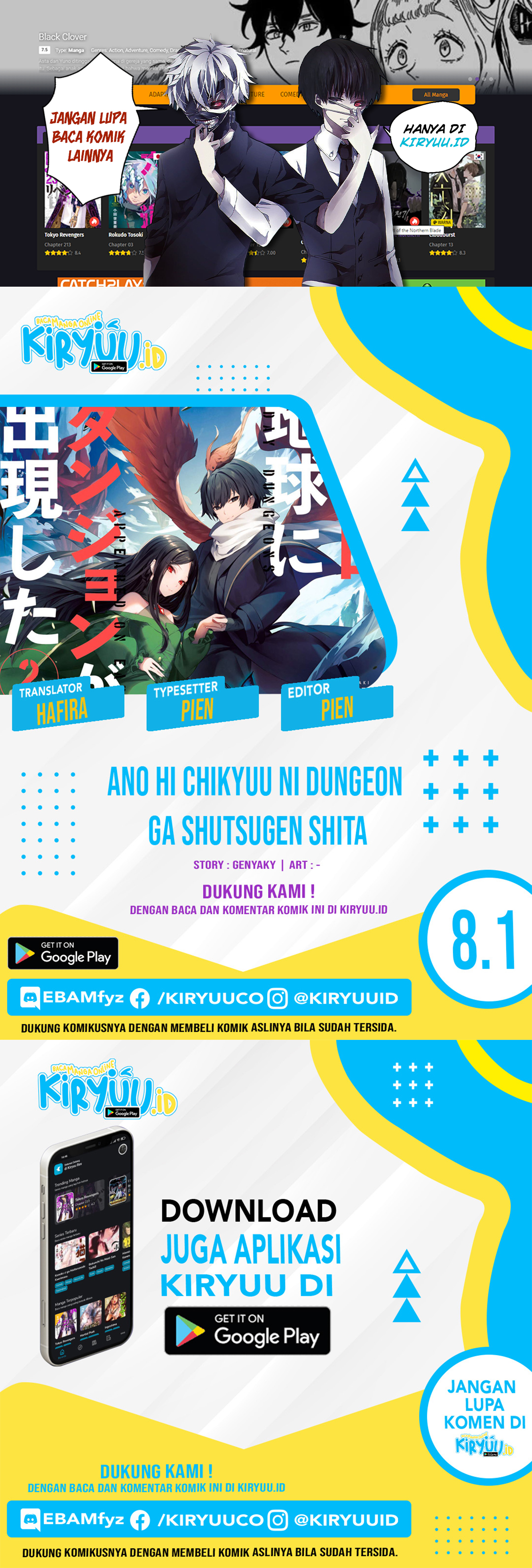 Read the latest manga Ano Hi Chikyuu ni Dungeon ga Shutsugen Shita Chapter 8.1 at KomikIndo. Manga Ano Hi Chikyuu ni Dungeon ga Shutsugen Shita is always updated at KomikIndo. Dont forget to read the other manga updates. A list of manga collections KomikIndo is in the Daftar Komik menu.